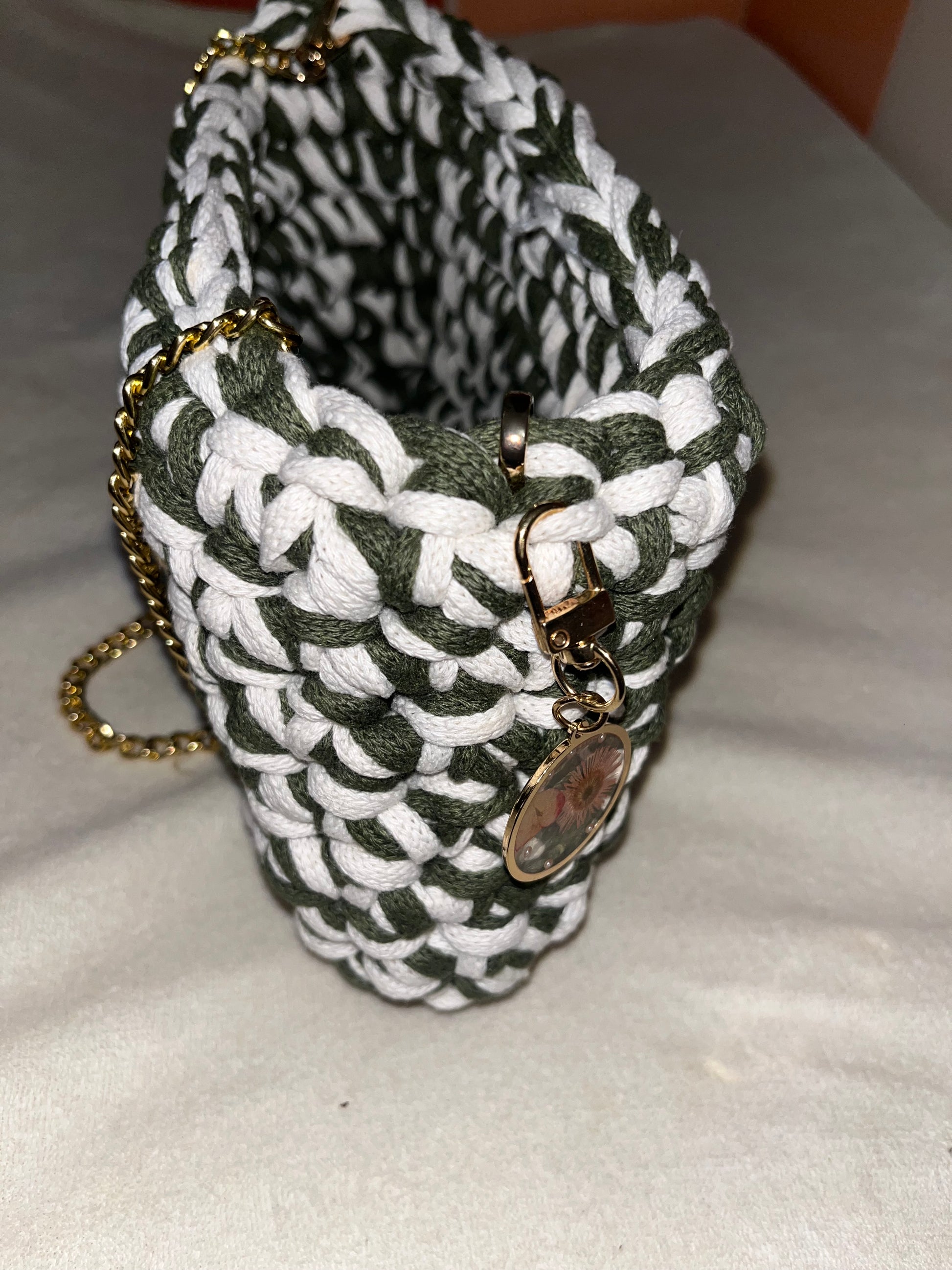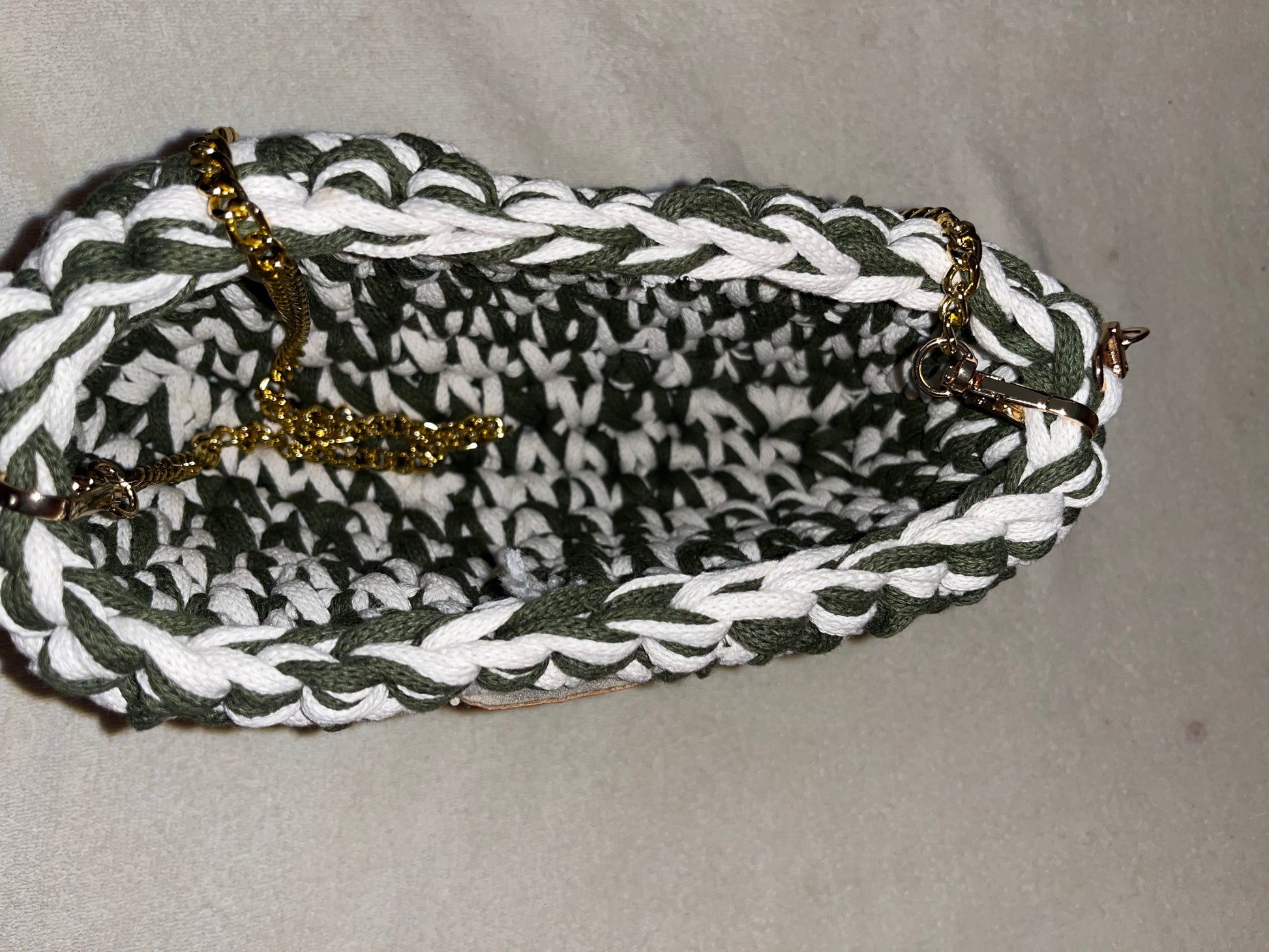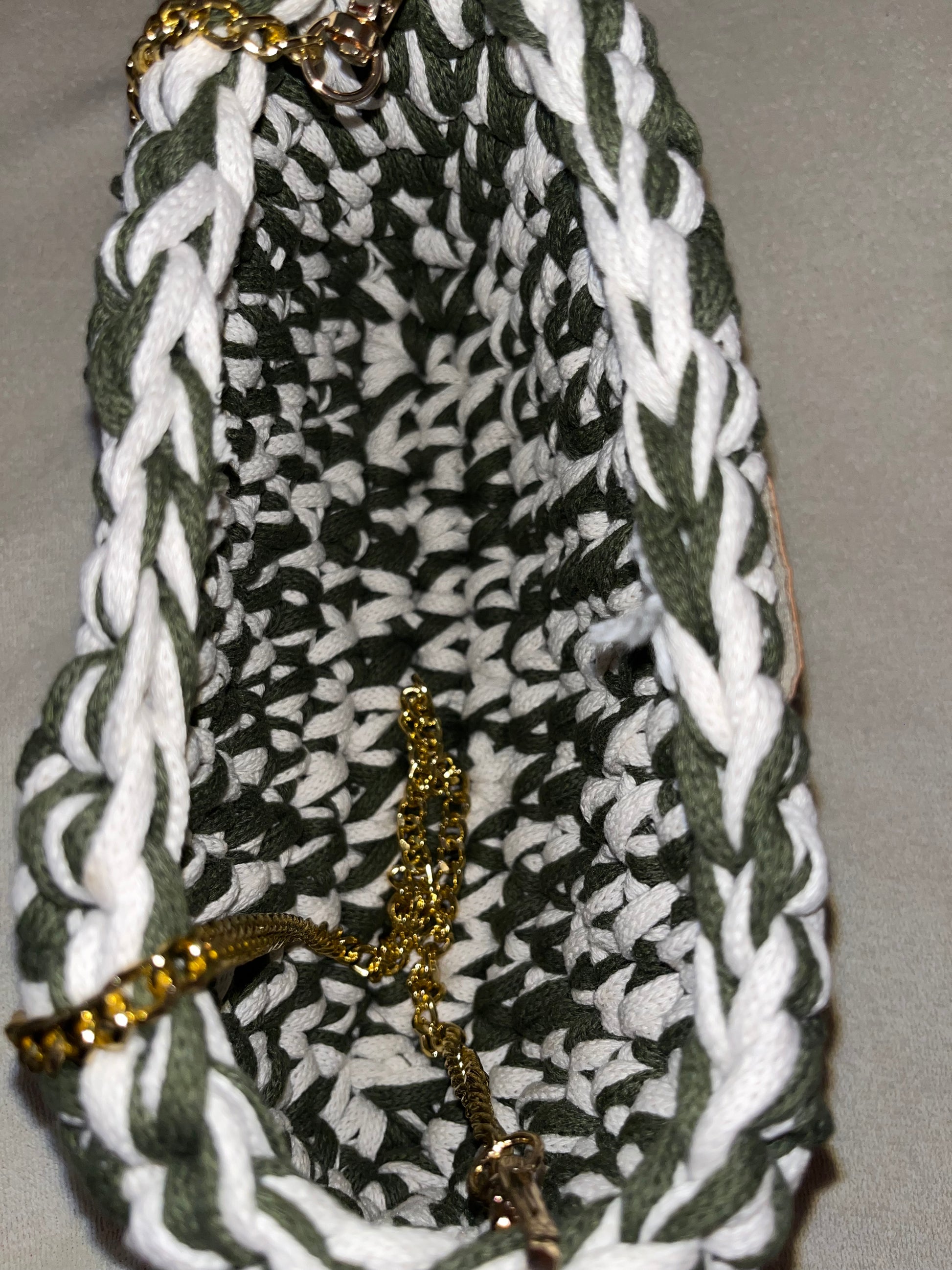 Sac à main avec chaîne facile à attraper par deux manière différente. Fait à la main